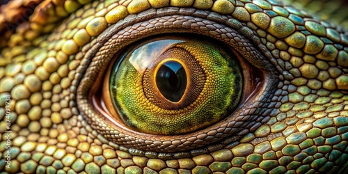 Close up of a reptilian eye with scales and slit pupil, reptile, lizard, exotic, creepy, scaly, cold-blooded, sharp