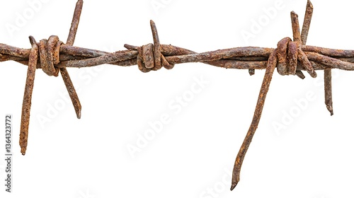 barbed, wire, rust-eaten, strand, white, background, close, up, metal, fence, sharp, security, protection, danger, isolated, old, texture, steel, rust, macro, iron, brown, detail, vintage, pattern, abstract, design, rough, surface, corrosion, weathered, closeup, object, nobody, structure, material, element, obstacle