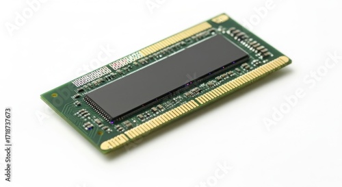 computer, memory, jampacked, module, laptop, component, electronic, circuit, board, microchip, processor, technology, hardware, datum, storage, stick, chips, green, grey, isolated, white, background, macro, close, up, digital, upgrade