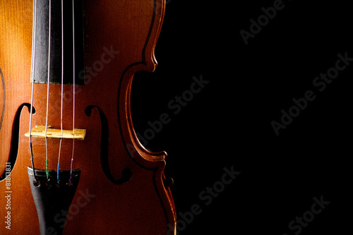 Close up of a violin isolated on black