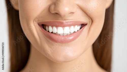 Close up of a woman smiles with beautiful white teeth without show whole face