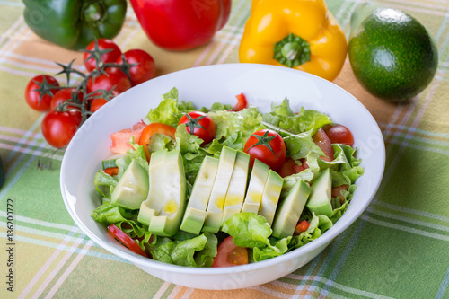tomatoes, red, green, pepper, salad, avocado, bowl, receipe, healthy, fresh, buddha, background, brussels, diet, vegetable, meal, lunch, spinach, food, dinner, vegan, sprout, view, vegetarian, orange, natural, colourful, top, organic, delicious, snack, eating, white, space, radish, chicken, cucumber, pomegranate, lime