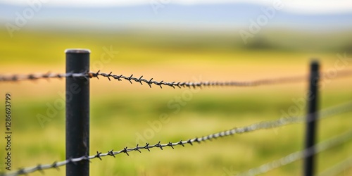 close up of barbed wire fence in green pasture, emphasizing safety and security for livestock