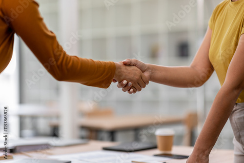 Close up of business handshake. Asian business people making a handshake,