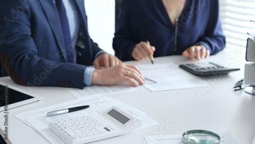 inspecting, tax, accountant, business, finance, man, woman, team, working, accounting, people, blue, calculating machine, document, office, work, analysis, financial, report, datum, collaboration, paperwork, desk, strategy, investment, budget, plan, economy, corporate, professional, adviser, adviser, meeting, management, tax, income, expense, profit, growth, chart, graph, calculation, number, research, market, sale, revenue, horizontal