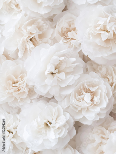 Close up of delicate white roses. Floral background. Soft and romantic.