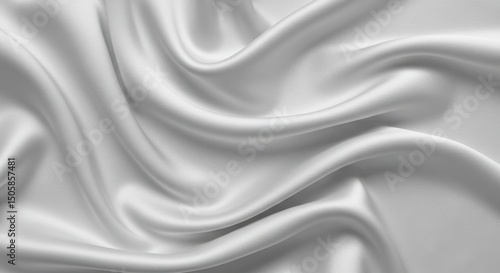 Close up of flowing white silk fabric with soft waves, creating a luxurious and elegant texture, perfect for backgrounds and designs.