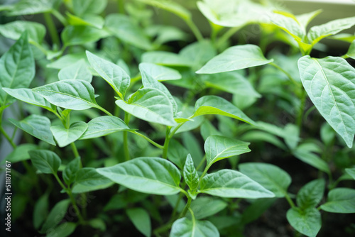 close up of green young pepper leaves