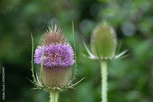 Close up of inflorescence of a wild teasel, Dipsacus fullonum. It is medicinal plant.