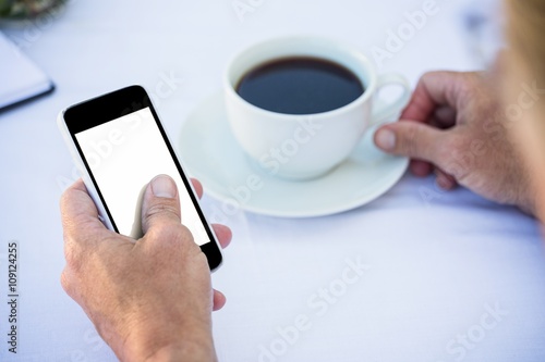 businessman, suit, well-dressed, smart, elegant, posh, stylish, sophisticated, business, career, corporate, professional, working, sunny, sunshine, bright, outside, terrace, eatery, sitting, smartphone, mobile phone, wireless technology, phone, holding, texting, dialling, typing, text message, text messaging, hot drink, tea, hot drink, hot beverage, mug
