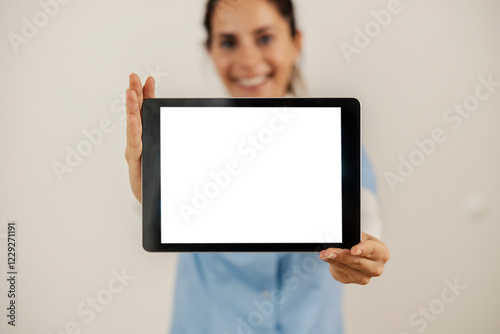 nurse, tablet, specialist, medicals, health, health care, medicine, doctor, woman, female, people, real people, human, person, health care, care, physician, screen, uniform, showing, professional, practitioner, one person, medic, expertise, technology, assistance, consult, hold, show, camera, isolated on white
