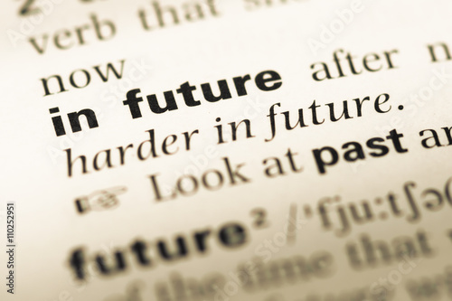 Close up of old English dictionary page with word in future