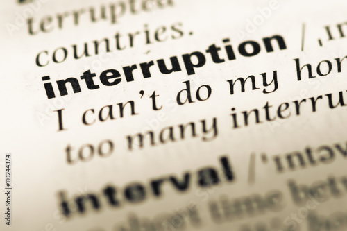 Close up of old English dictionary page with word interruption