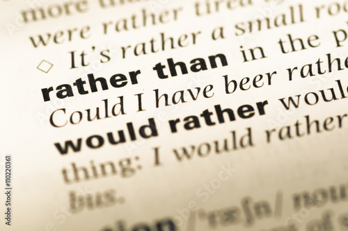 Close up of old English dictionary page with word rather than