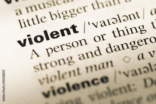 Close up of old English dictionary page with word violent