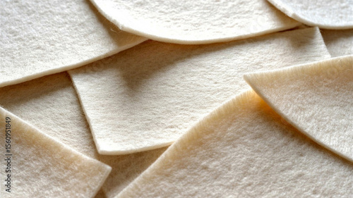 Close up of overlapping pieces of soft cream colored felt fabric texture