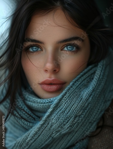 person, wearing, foulard, girl, dark, hair, eye, stylish, fashion, accessory, closeup, neck, fabric, detail, style, elegance, beauty, autumn, winter, cold, weather, cosy, trendy, fashionable, outfit, chic, brunette, model, female, young, woman, close, detail, clothes rack, clothing, pretty, attractive, elegant, personality, sense, statement