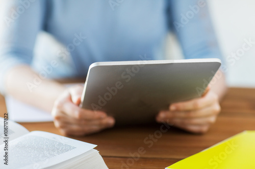 woman, education, school, student, tablet, cyberspace, hand, table, girl, study, computer, young, people, e-learning, learning, university, college, technology, modern, app, application, studying, distance, person, writing, teenage, book, home, homework, lifestyle, contraption, wooden, connection, online, browsing, communication, social, networking, pointing, finger, searching, closeup