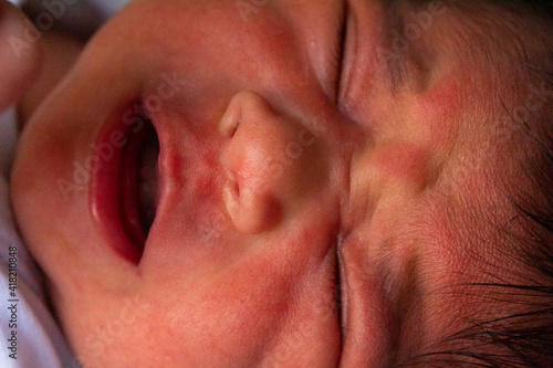 close up of the face of a newborn hispanic baby