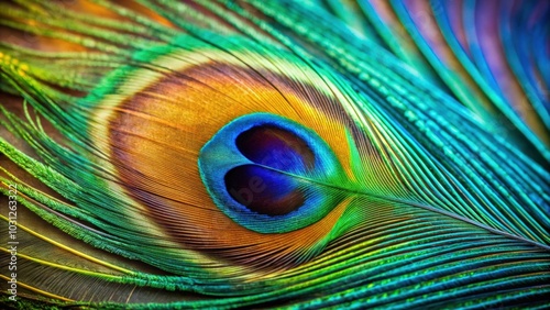 Close up of vibrant and detailed peacock feather , plumage, colors, patterns, texture, bird, exotic, beauty, close-up