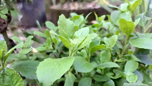 Close up of vibrant green Pluchea indica or Indian camphorweed leaves, aromatic herb used in traditional Asian medicine for therapeutic and anti-inflammatory purposes