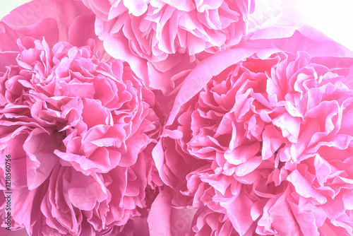 Close up of vivid pink peony petals, showcasing their intricate texture and natural beauty. A perfect choice for romantic or feminine-themed designs and projects. Full bloom