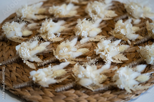 Close up of wedding boutonnieres. Concept: wedding, love, romance