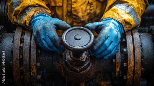abstract, industry, metal, macro, up, industrial, engineer, iron, raincoat, construction, rain, hand, glove, yellow, maintenance, rust, drop, rust-eaten, gear, gloved, repair, texture, detail, wet, water, oil, men at work, plant, close, heavy, machinery, technician, plumbing, blue, valva, factory, corrosion, pipe, photo, damp, pipeline, safety