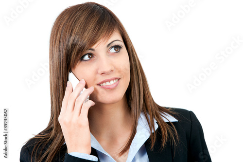 closeup, woman, young, talking, mobile phone, female, businesswoman, isolated, adult, cute, elegant, executive, attractive, background, beautiful, beauty, black, boss, business, confident, copy space, corporate, girl, happiness, smiling, human, job, lady, model, modern, natural, 1, people, person, portrait, positive, pretty, professional, space, studio, success, successful, suit, white