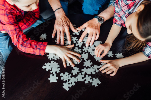 adult, attractive, beautiful, block, boy, brother, casual attire, caucasian, children, close, cute, father, excited, family, fun, game, game, girl, granddaughter, grandfather, grandson, photogenic, happy, home, indoor, jigsaw, children, children, leisure, living, man, people, portrait, puzzle, repetition, room, showing, sister, sitting, smile, son, team, thinking, together, up, weekend, white, young