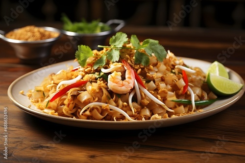 noodle, thai, food, closeup, prawn, fried, asian, bean, cookery, dish, lemon, epicure, lime, lunch, meal, oriental, eatery, sauce, seafood, shrimp, sprout, tasty, siam, traditional, horizontal, photo, plate, condiment, egg, national, pad, stir-fried, vegetable, cookery, peanut, eatery, dinner, popular, ingredient, spicey, coriander, wood, table