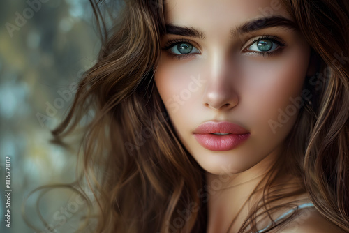 close up portrait of a beautiful woman, skin, hair