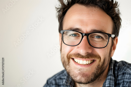 Close up portrait of handsome smiling man wearing eyeglass. Elegant man in glasses. Optics style for men