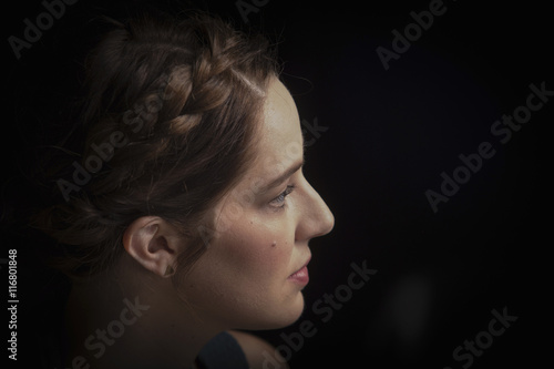 portrait, woman, young, brown hair, closeup, 1, face, beautiful, look, indoor, contemplation, alone, people