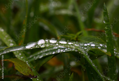 drop, water, dew, rain, raindrop, droplet, grass, blade, green, after, closeup, nature, plant, close, up, botany, detail, copy, space, fresh, freshness, fragility, fragile