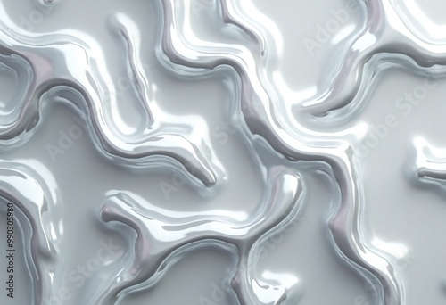 Close up texture of liquid shiny metal in silver gray color with highlights and shimmers. Liquid metallic texture