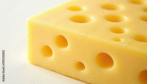 Close up view of block of swiss cheese with hole texture for National Cheese Lover's Day