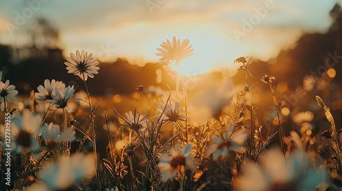 wildflower, sunset, summer, nature, field, meadow, gold, light, sunshine, beautiful, floral, flower, blossom, bloom, plant, green, evening, evening sky, background, romantic, peaceful, tranquil, delicate, soft, abstract, beauty, botany, plant, landscape, rural, countryside, flora, bloom, floral pattern, nature wallpaper, natural beauty, sunlight