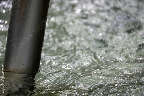 close up water flowing from a fountain in the rain