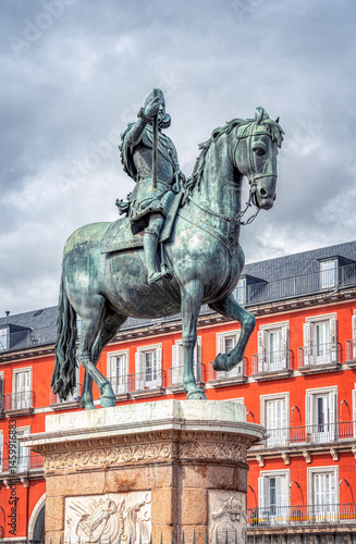 Close up with the Equestrian Monument to King Felipe III, in the Plaza Mayor of Madrid