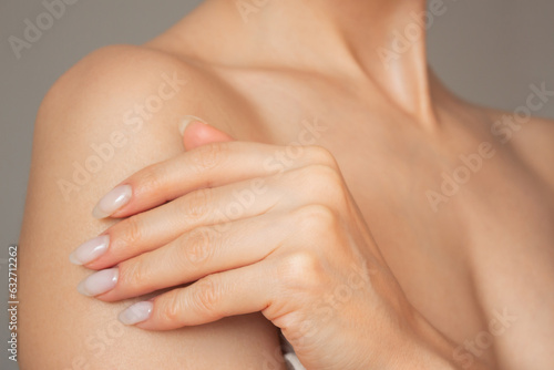 sensuality, body, closeup, beauty, shoulder, female, adult, adults only, affectionate, spa, beauty treatment, care, clean, closeup, dermatology, finger, freshness, hand, human finger, hygiene, manicure, naked, pampering, people, skin, smooth, softness, touching, woman, attractive, beautiful, cosmetology, cream, epilation, finger, gently, health, honed, model, moisturise, nail, treatment, natural