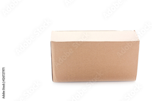 Closed cardboard box on white background.