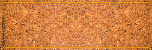 Closed up of panoramic brown cork board texture with yellow saffron boarder for banner background