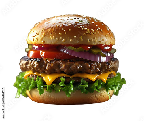 close-up a Delicious Gourmet Cheeseburger With Fresh Vegetables on cut out background