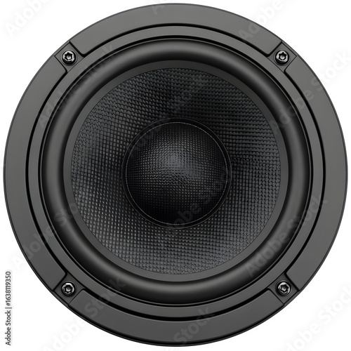 speaker, audio, sound, woofer, music, bass, cone, driver, loudspeaker, black, membrane, surround, circle, equipment, technology, stereo, high fidelity, device, electronic, vibration, isolated, white, transparent, background, detail, closeup, professional, power, studio, modern, object, hardware, design, performance, element, diaphragm, resonance, gear, system, signal, frequency