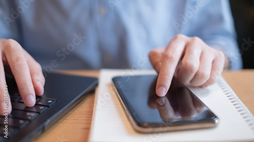 Close-up business hand holding using smartphone technology communication modern lifestyle concept