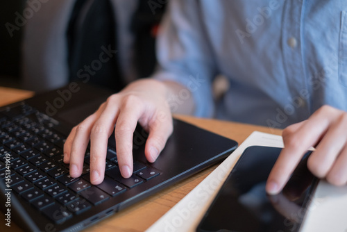 Close-up business hand holding using smartphone technology communication modern lifestyle concept
