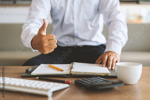 closeup businessman working in office with soft-focus and over light in the background
