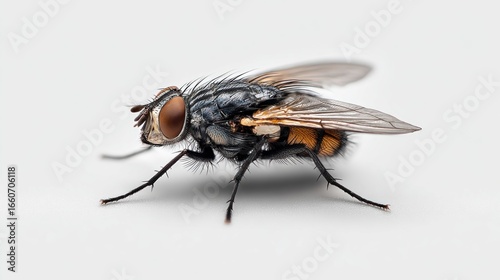 fly, insect, closeup, macro, detail, wing, body, leg, animal, nature, side, view, grey, brown, yellow, orange, small, fuzzy, antennae, compound, eye, insect, flying, arthropod, zoology, photographic, high, resolution, white, background, sharpened, clarity, sharp, natural, fauna, wildlife, close, detailed, perspective, light, colours, black, pattern