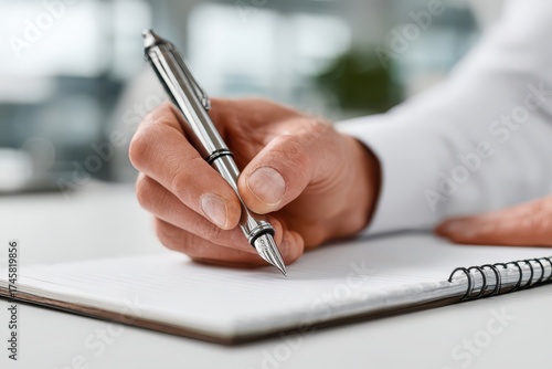 hand, writing, fountain pen, notebook, note, paper, business, office, work, education, study, learning, professional, elegant, closeup, detail, planning, idea, concept, strategy, productivity, concentration, sharpened, creativity, brainstorming, stationery, desk, indoor, person, document, communication, task, management, formal, clean, white shirt, calligraphy, script, message, thinking, analysis, administration, cognition, signature